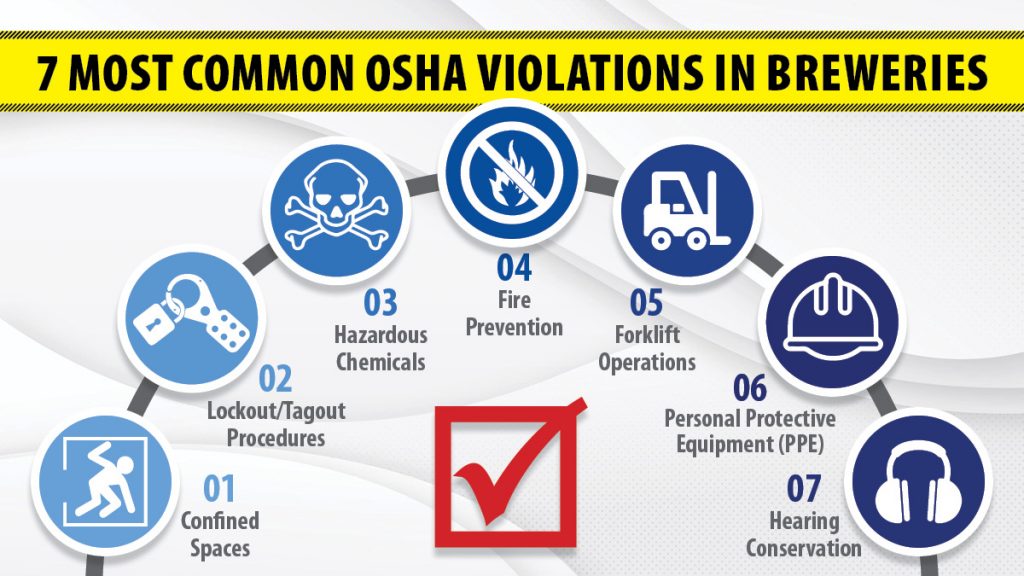 Companies that practice a safety-first philosophy can expect fewer employee injuries and greater productivity and employee engagement. One of the most effective ways to design a safety culture is to make sure all employees are aware of potential risks that exist in their work environment and the proper procedures that can prevent injuries from happening. Here are seven most commonly cited OSHA violations in breweries, what you should know about each, and the policies that should be in place to achieve a safety-first culture: